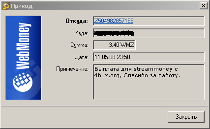 * - минимум для выплаты 4 WMZ, с вычетом комиссии Вы получите 3.40 WMZ