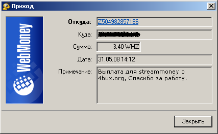 * - минимум для выплаты 4 WMZ, с вычетом комиссии Вы получите 3.40 WMZ